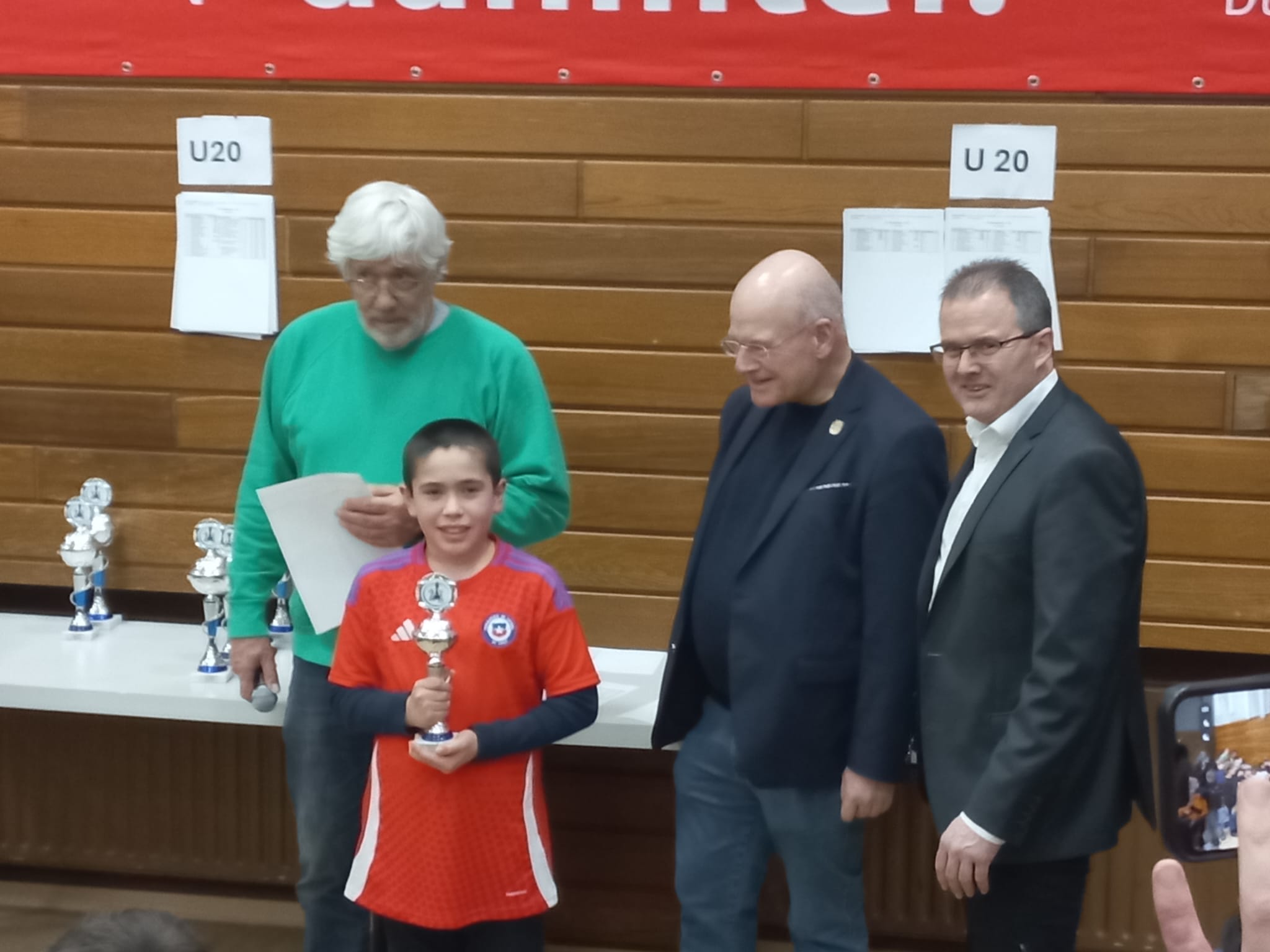In der Altersklasse U12 schaffte Sandro den Sprung auf das Siegertreppchen und landete nur aufgrund der schlechteren Buchholzwertung auf Platz 3. Nachdem er zwei Punkte im ersten Tunierteil hat liegen lassen, zeigte er Nerven und Kondition und kämpfte er sich in den letzten Runden wieder in das Spitzenfeld. Besondere Spannung erzeugte er dadurch, dass er in der vorletzten Runde mit fünf Minuten Verspätung am Brett erschien – und die Partie trotzdem souverän gewann. Insgesamt war die Arminia beim diesjährigen Rurtalpokal in den Altersklassen U12, U14 und U16 am Start. In der U16 legte Till mit fünf verlustfreien Partien einen Bilderbuchstart hin und sicherte sich direkt mit einer Schachuhr einen der begehrtesten Preise.